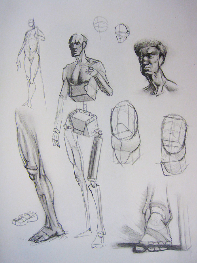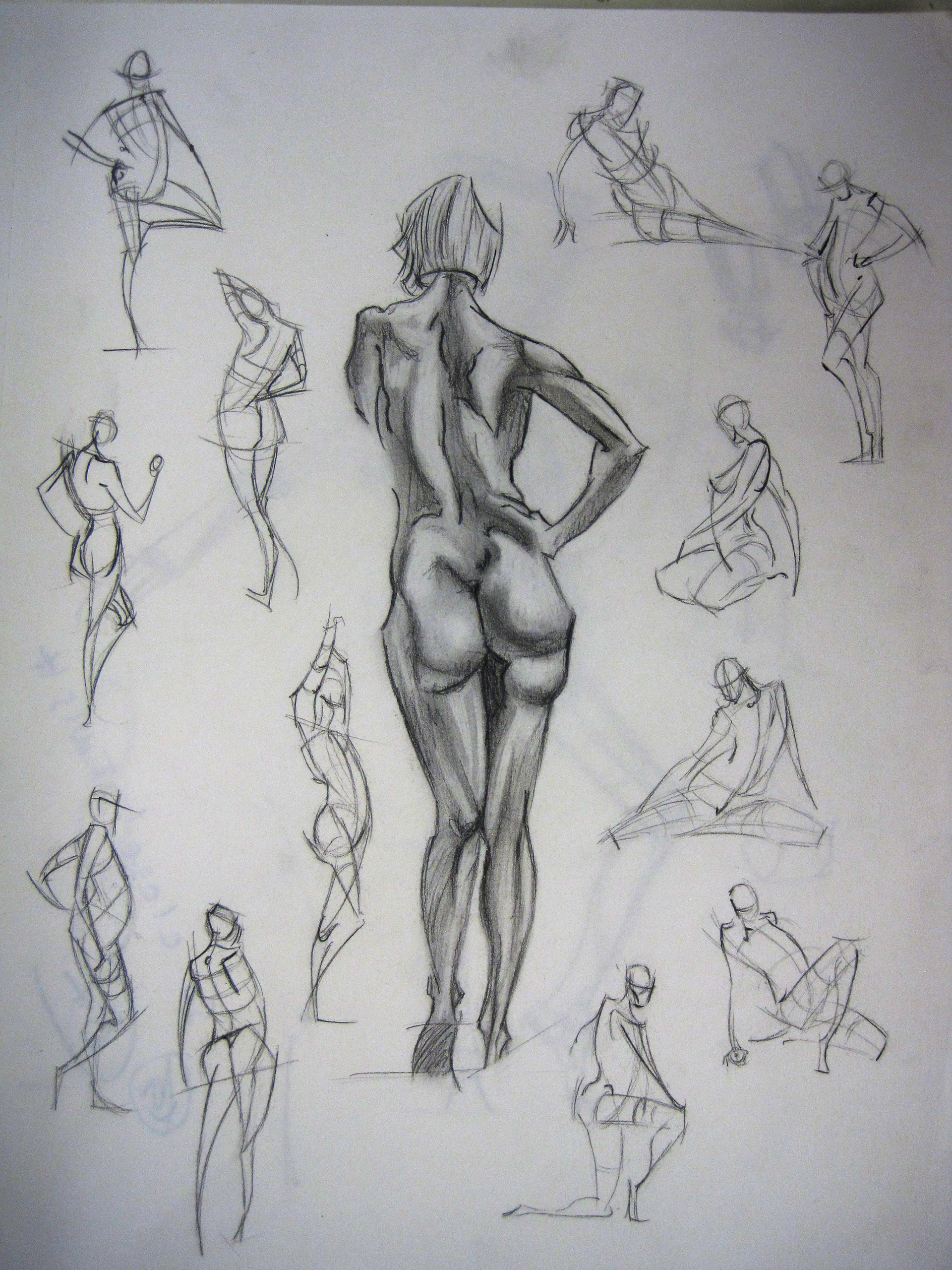 Drawings from life and photos conducted during a "Life Drawing" class.